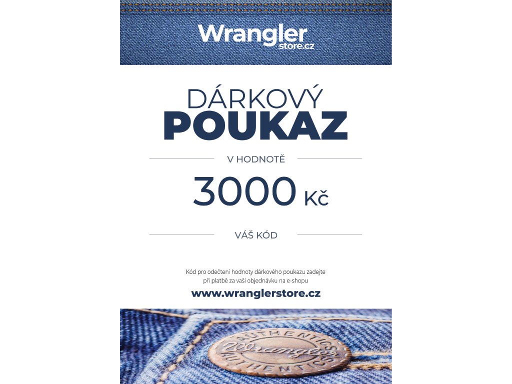 Dárkový poukaz v hodnotě 3 000 Kč do Wranglerstore.cz. Ideální dárek pro milovníky stylového a kvalitního oblečení. Darujte radost z výběru jedinečných kousků podle vlastního vkusu.