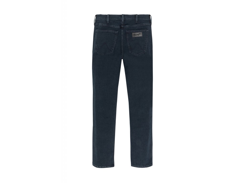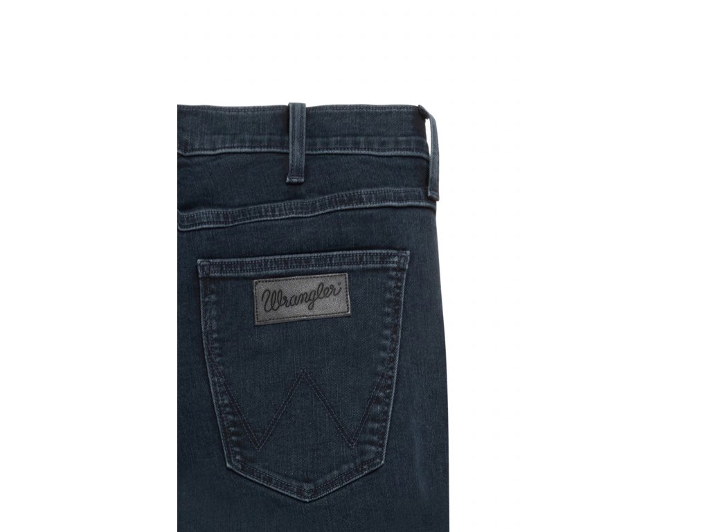 Kalhoty mají tradiční pětikapsový design. Hladké stehy na předních kapsách a kovový knoflík s vyrytým logem Wrangler jsou jasným znakem kvality a odolnosti. Zadní kapsy nesou typické dvojité prošití ve tvaru W a tmavou koženou nášivku, která decentně připomene legendární značku.