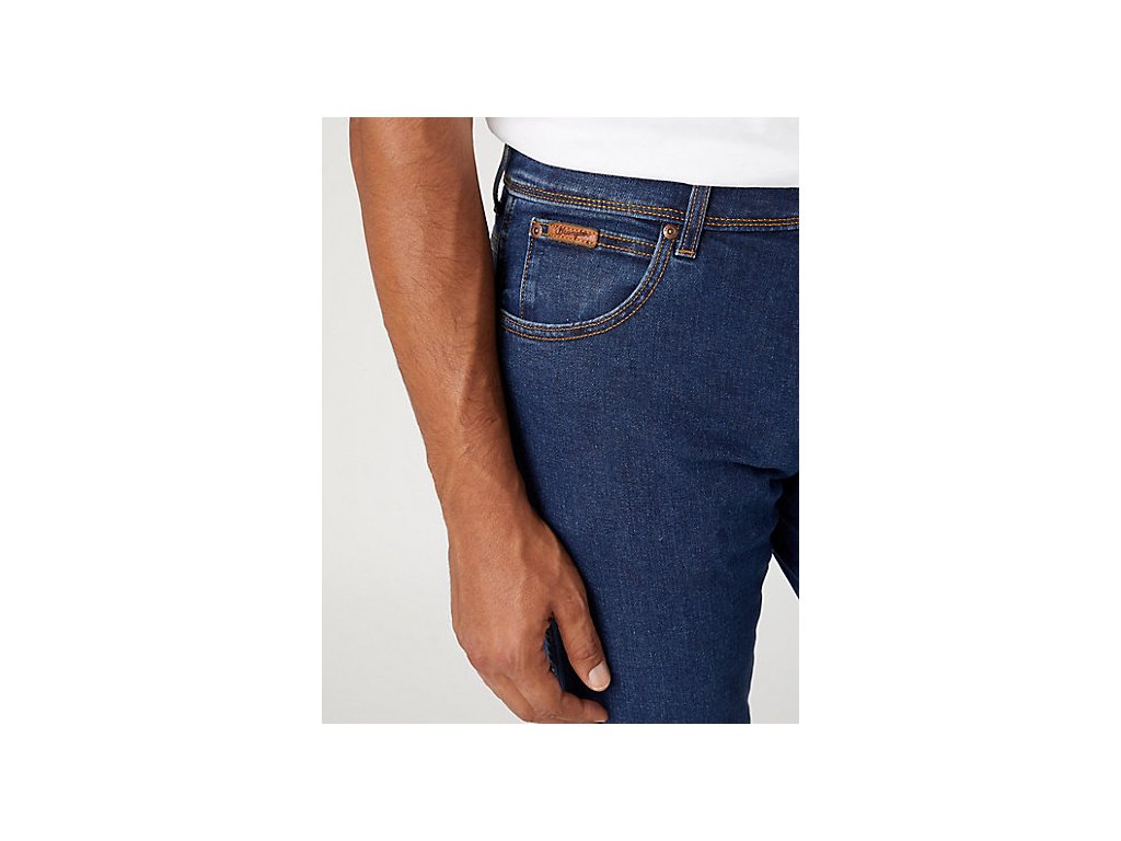 Oranžové prošití ve tvaru „W“ na zadních kapsách, mosazné knoflíky - detaily, které nejsou jen pro parádu. Hnědá kožená nášivka WRANGLER na pravé zadní kapse dává najevo, že tohle je víc než jen obyčejné kalhoty.