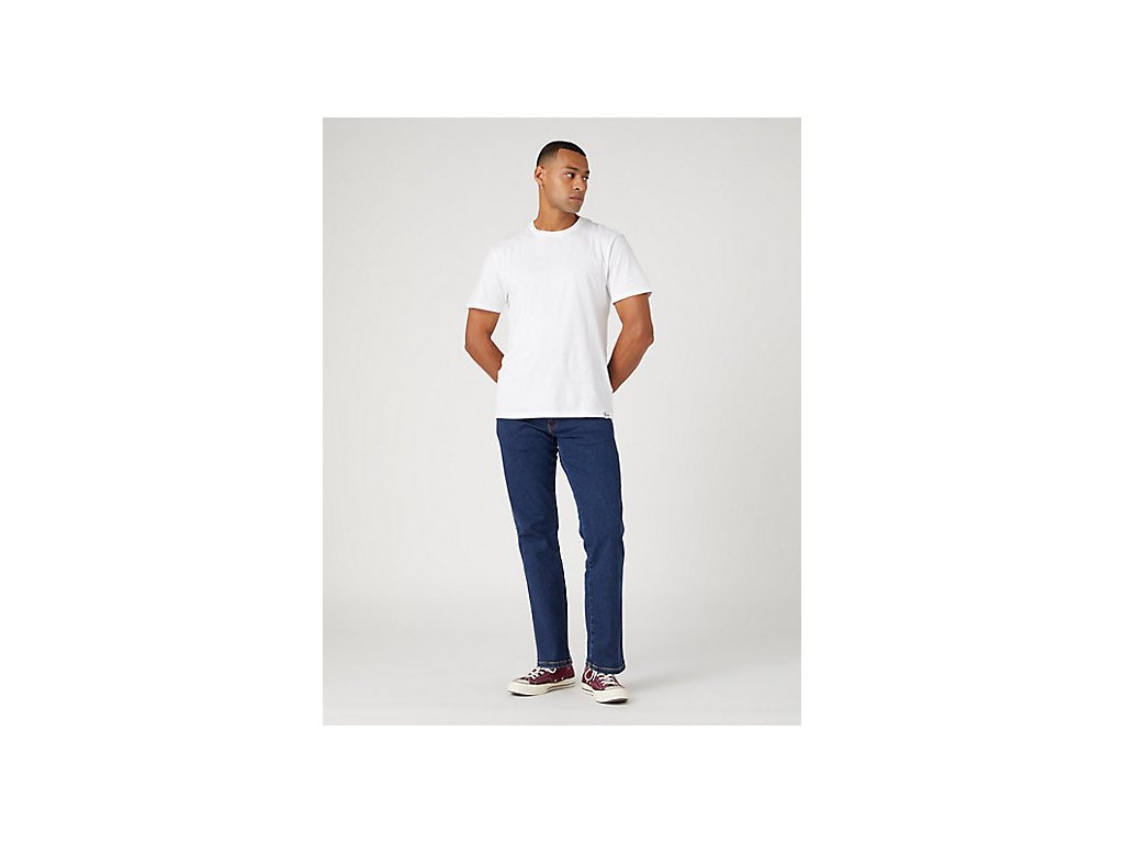 Wrangler TEXAS STRETCH DARKSTONE - džíny, co sedí jako ulité a drží tvar ať se děje co se děje. Klasika, která se neztrácí v módních trendech. Tmavě modré, bez šoupání, ušité z poctivého denimu o síle 13 ½ Oz. K tomu střední sed, rovný střih a zapínání na zip - zkrátka ověřená kombinace pro chlapy, co vědí, co chtějí.
